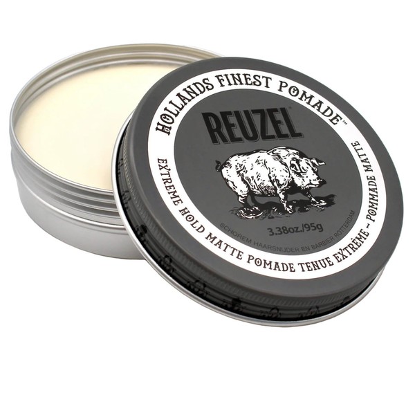The Reuzel Extreme Hold Matte Pomade 95g is a high-performance styling product designed for maximum hold and a natural matte finish. This pomade is perfect for those who want to achieve a strong, long-lasting hold without the shine. Its water-based formula makes it easy to apply and wash out, while providing a firm grip that keeps your hairstyle in place all day. Ideal for creating a variety of styles, from classic to modern, the Reuzel Extreme Hold Matte Pomade is a versatile addition to any grooming routine. What are the features and benefits of Reuzel Extreme Hold Matte Pomade 95g? Provides extreme hold with a natural matte finish Water-based formula for easy application and removal Suitable for all hair types and styles Maintains style throughout the day without flaking Who is Reuzel Extreme Hold Matte Pomade 95g for? Perfect for individuals seeking a strong hold and matte finish for their hairstyles, suitable for both classic and contemporary looks.