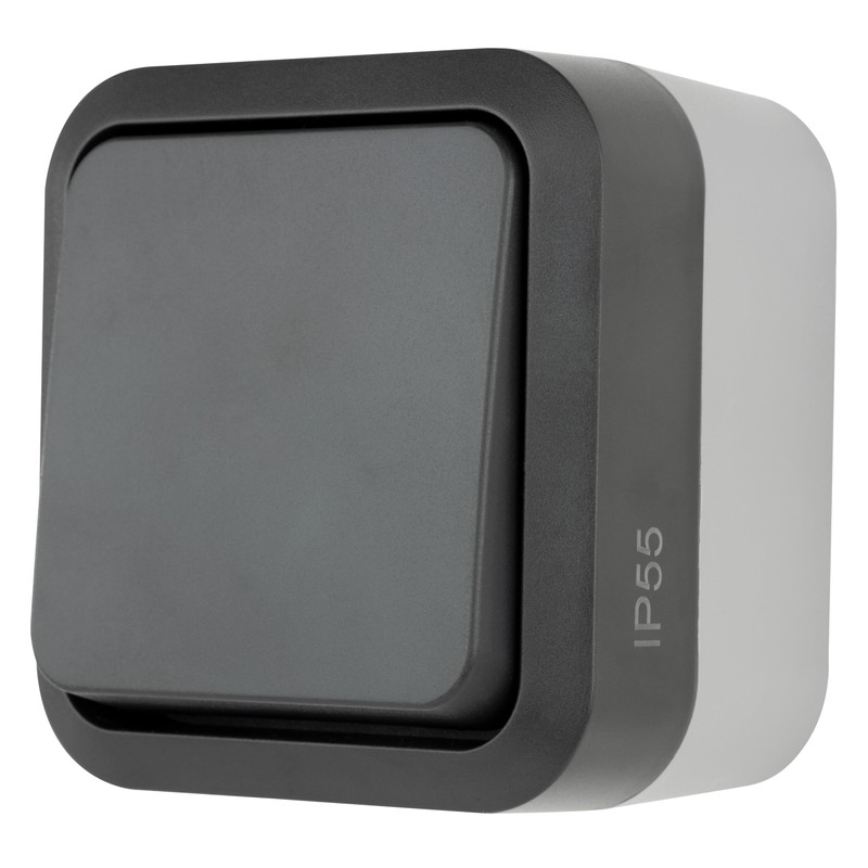 REV 0004310400 AquaStorm Push-Button Light Switch, Wet Room, IP55 Single Pole, Flush-Mounted, Anthracite