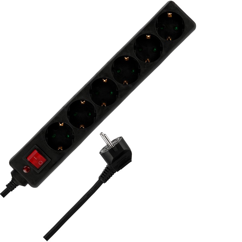 - The housing of the six-way power strip is made of impact-resistant plastic and has increased touch protection. This power strip is equipped with a protective contact plug