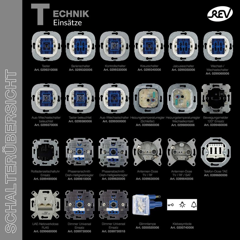 - Suitable for the Vario switch series: REV Technik roller shutter timer (0399490006)