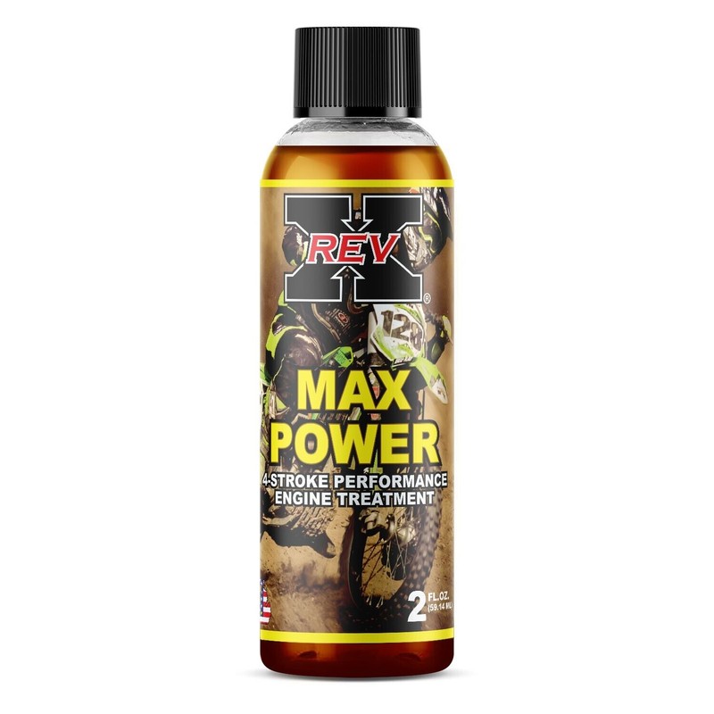 Four-stroke dirt bike engines create more power and torque than ever. However, high-revving and high-horsepower engines maximize temperatures and stress on all internal engine components. These extreme temperatures and stress make unrealistic demands on the oil to lubricate and cool your engine properly. REV X Max Power 4-Stroke Performance Engine Treatment delivers all the benefits your engine needs to operate at maximum performance.