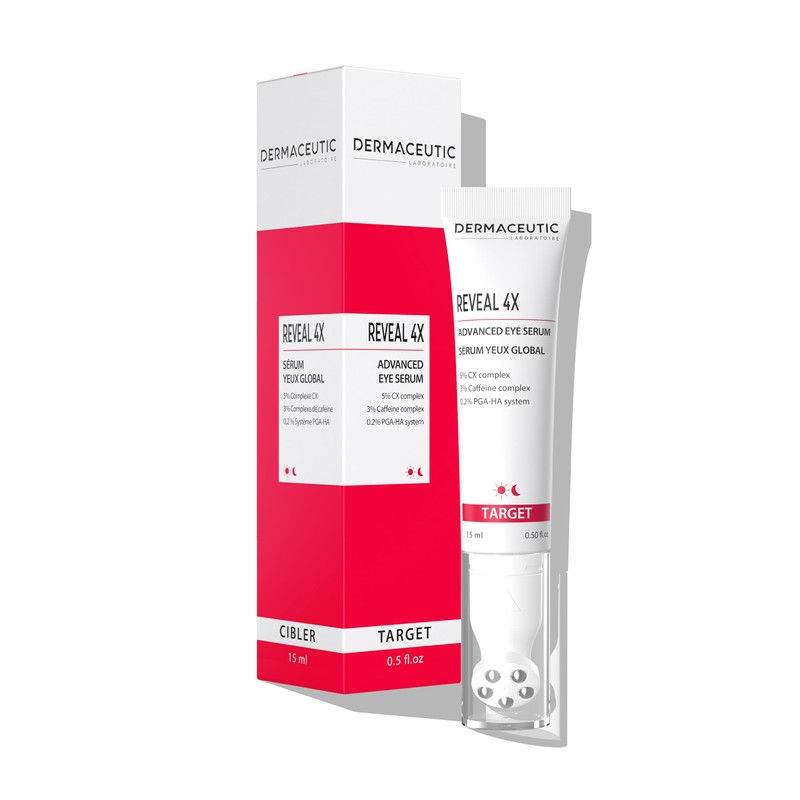 - Effect: Reveal 4X is a targeted solution that covers multiple needs of the eye area at the same time. Its synergetic blend of active ingredients, coupled with an innovative Zamac applicator, influences microcirculation, water retention and pigmentation.