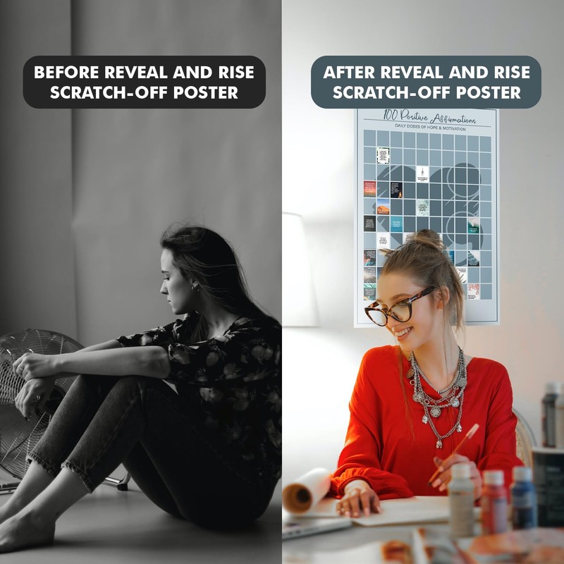 - 🌟 SCRATCH TOWARDS INNER STRENGTH - Empower your mental well-being journey with the transformative magic of our Scratch Off Poster. Purposefully crafted for a profound positive impact, Reveal and Rise guarantees that each scratch brings forth motivational affirmations, gently guiding you toward a radiant, more uplifting mindset.