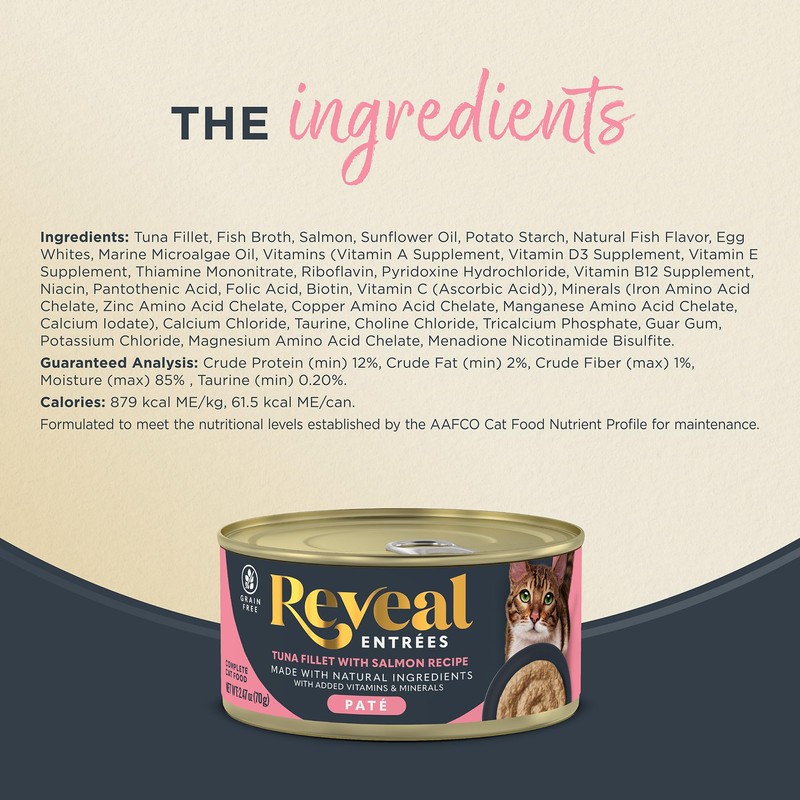 Reveal Grain Free Cat Food, Wet Cat Food, Tuna Fillet with Salmon Pate Recipe, 24 Count, 2.47 Ounce Cans