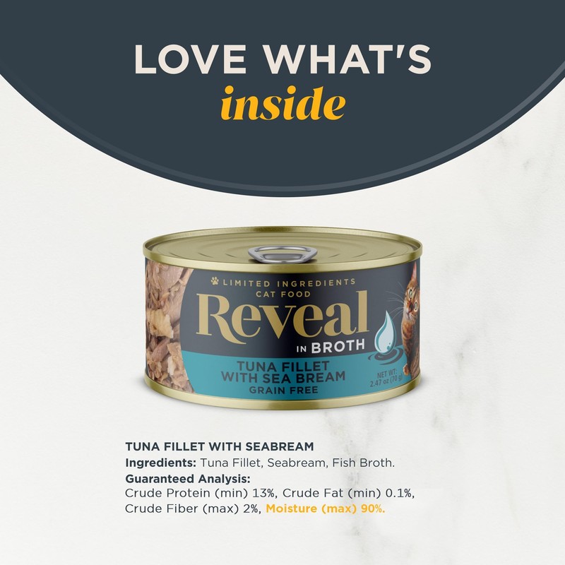Reveal Natural Wet Cat Food, 24 Count, Grain Free, Limited Ingredient Canned Food for Cats, Tuna with Sea Bream in Broth, 2.47 oz Cans