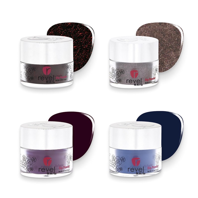 Revel Nail Revel Nail Dip Powder - Glitter Powder Dip Nail Polish, Chip Resistant Dip Nail Powder with Vitamin E and Calcium, DIY Manicure, 4-Pack