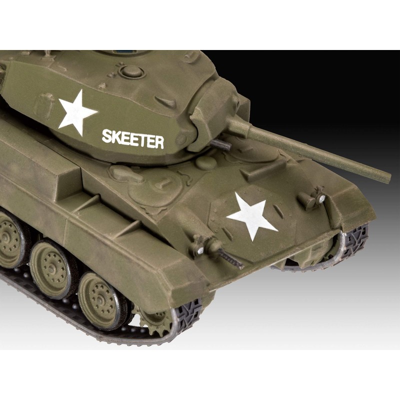 Revell Model Kit M24 Chaffee | American Tank in WWII | Rotating Tower & Diorama Plate | Accessories Including Glue and Brush
