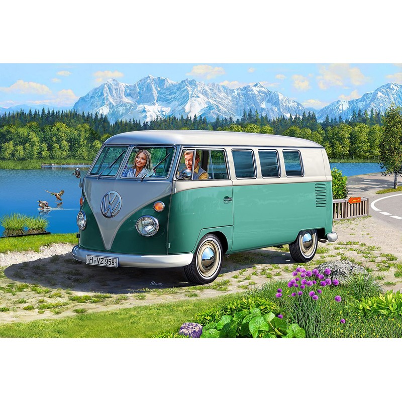 Revell Model Set 67675 VW T1 Bus 1:24 Scale Unbuilt/Unpainted Plastic Model Kit with Contacta Professional Glue, Paintbrush & Selected Aqua Color Paints