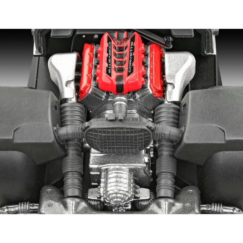 • Medium engine – The C8 Stingray has a mid-mounted motor and is therefore one of the most unique Corvettes in the series. With 500 hp, this sports car is sure to impress. Order your model kit today and be one of the first to own this great car.