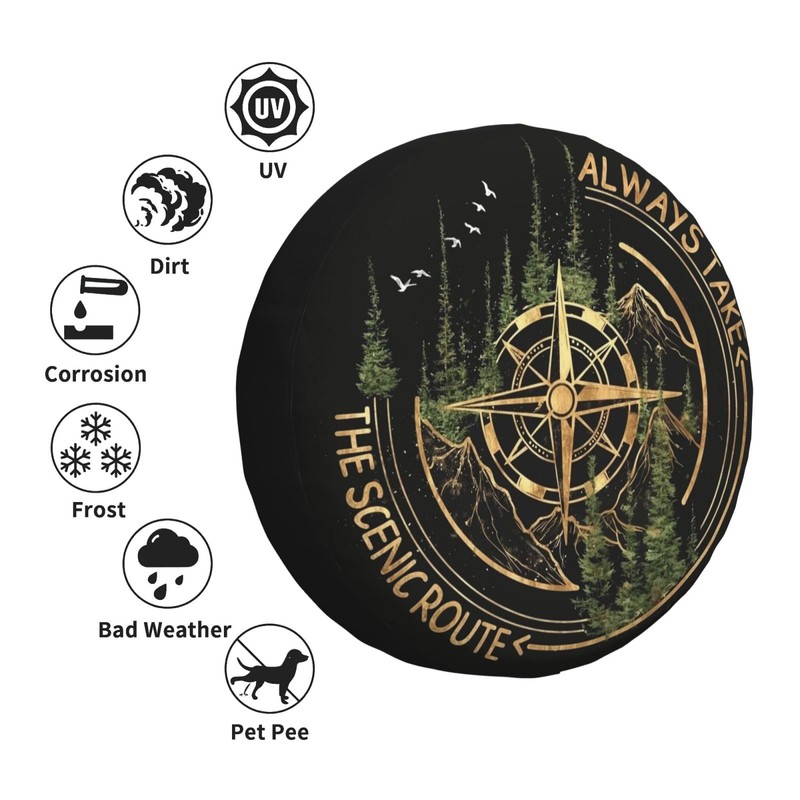 REVENEVER Spare Tire Cover for RV SUV Car Funny Compass Road Print Waterproof Dustproof Tire Cover for JP Camper Travel Trailer Truck
