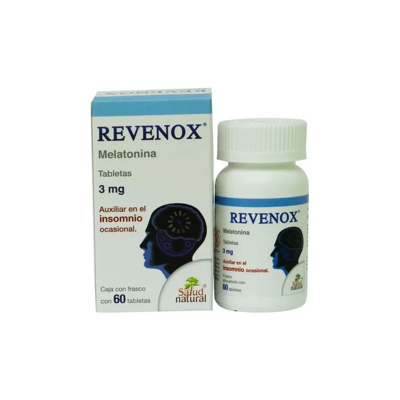 Revenox Melatonina 3mg (60 tabletas) es un suplemento eficaz para quienes buscan una solución natural para el insomnio 🌙. Con melatonina de 3mg, este suplemento ayuda a regular el ciclo de sueño y favorece un descanso profundo y reparador 🛌💤. Su fórmula en tabletas es fácil de consumir y está diseñada para promover la relajación y la conciliación del sueño, ideal para quienes tienen dificultades para dormir debido a estrés o cambios en el horario 🌒✨. ¡Recupera la calidad de tu descanso y mejora tu bienestar general con Revenox! 🌟
