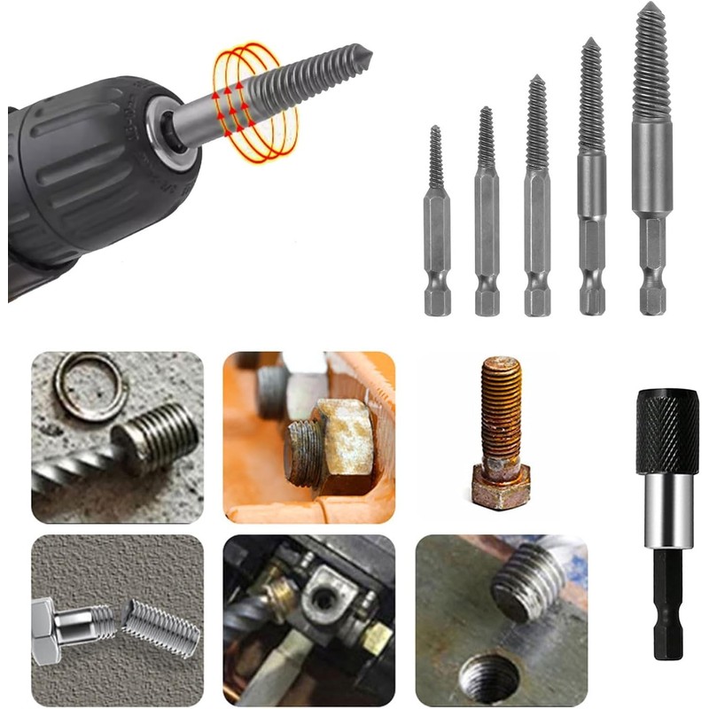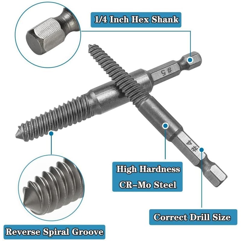 Reverse Tap Set, Set of 6, Hexagonal Shaft Screw Removal Bit, Screw Removal B...