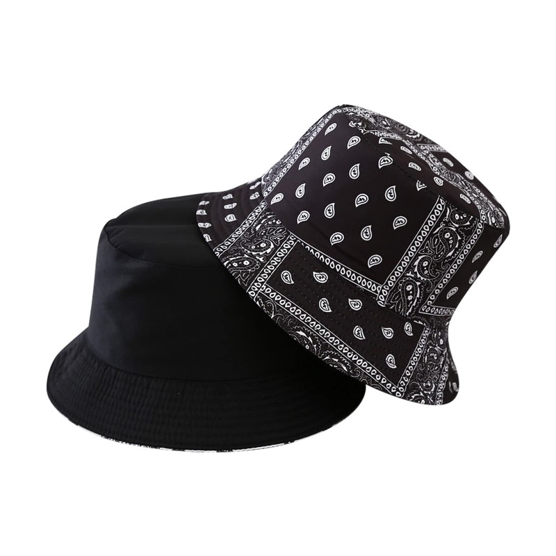 Reversible Bucket Hat Cotton Fisherman Cap Packable Travel Beach Packable Sun Hat B-Black