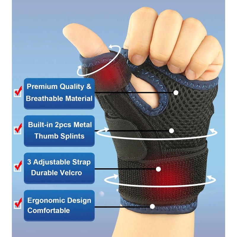 • [Stable Support For Thumb] Supporting the thumb joints and ligaments, the trigger thumb brace restricts the movement of the thumb while supplying adjustable compression and retaining therapeutic heat to improve circulation and promote healing. The lightweight brace allows the full use of the remaining fingers so you can complete daily tasks with ease.