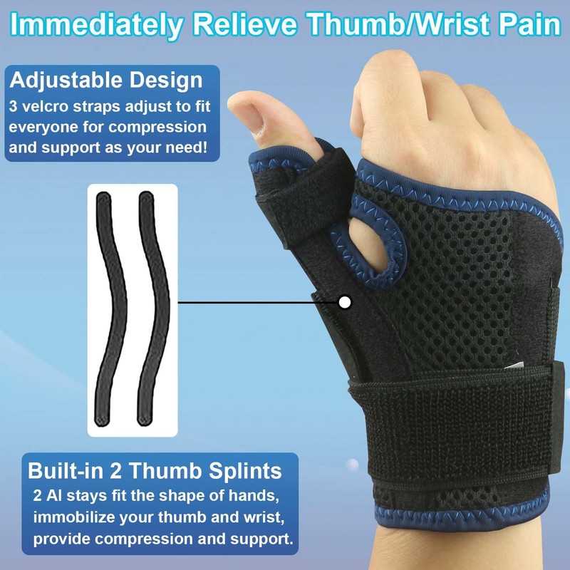 • [Thumb and Wrist Pain Relief] Instantly thumb pain and fatigue relief. It can stabilize and support your weak or injured thumb joint or sore muscle. Helping you to get relief from aching, sore, swelling, inflammation caused by blackberry thumb, weak finger, arthritis, ligament tears, sprained hand, tendinitis, repetitive stress injury, Carpel Tunnel Syndrome, and more!