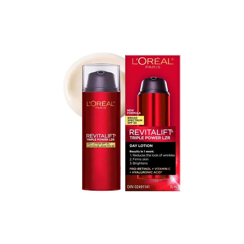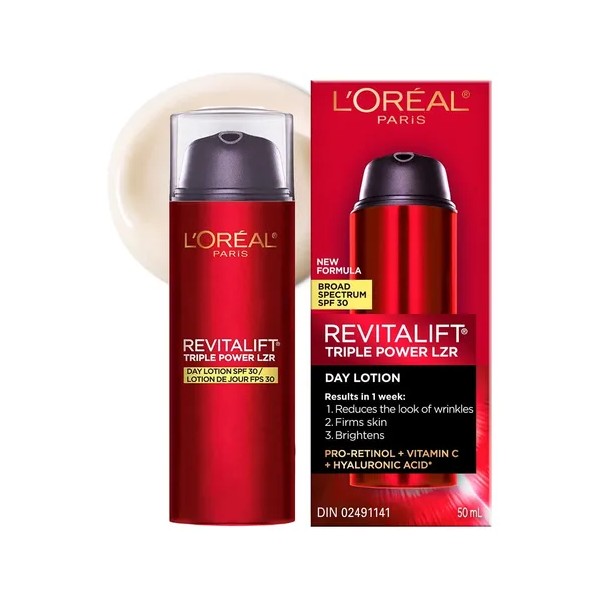 Luce una piel más firme, luminosa y protegida con la crema facial anti-edad L’Oréal Paris Revitalift Triple Power SPF 30, una poderosa fórmula que combina Pro-Retinol, un ingrediente dermatológico reconocido por su eficacia contra los signos del envejecimiento, con protección solar de amplio espectro.