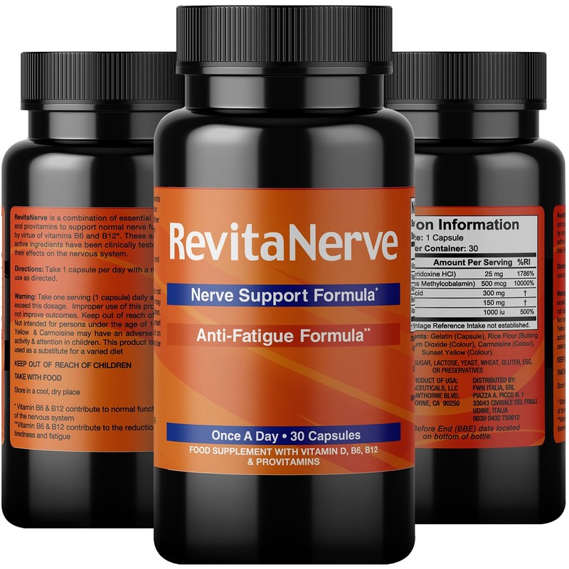 RevitaNerve – The only once–per–day UK Compliant Nerve Revitalizing Supplement supports healthy nerve function. This combination of ALA, Benfotiamine (Vitamin B1), Vitamin B6, Vitamin B12 (methylcobalamin), Vitamin D, provides nutrient support for activity and comfort.