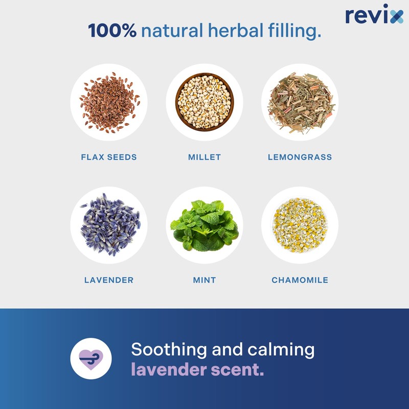 - Elegant Color: orchid. Filler Herbs: Flax seed, millet, lavender, peppermint, chamomile, lemongrass. Neck shoulder wrap size: neck 4", upper back 8", shoulders 20.5". REVIX customer support team provides after sales support and services to customers worldwide. Please use and enjoy