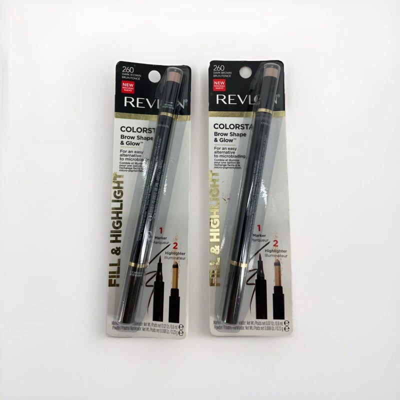 Revlon 2 PACK Revlon Colorstay Brow Shape & Glow Fill and Highlight 260 Dark Brown NEW