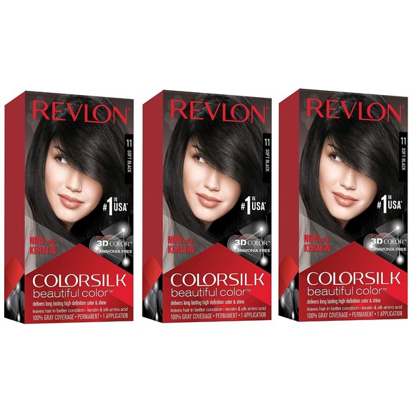 REVLON Colorsilk Color Permanent Hair Dye, #11 Soft Black (Pack of 3)