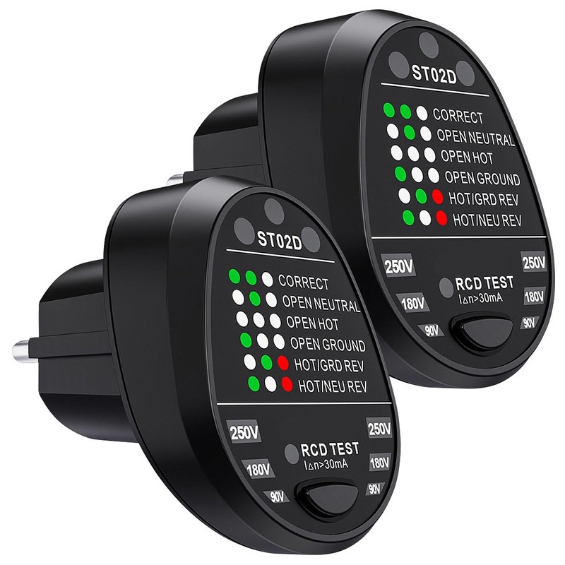 revolt Socket Testing Equipment: Socket Tester with Status LEDs, up to 230 Volt Set of 2 (Multifunctional Socket Tester, Socket Detector)