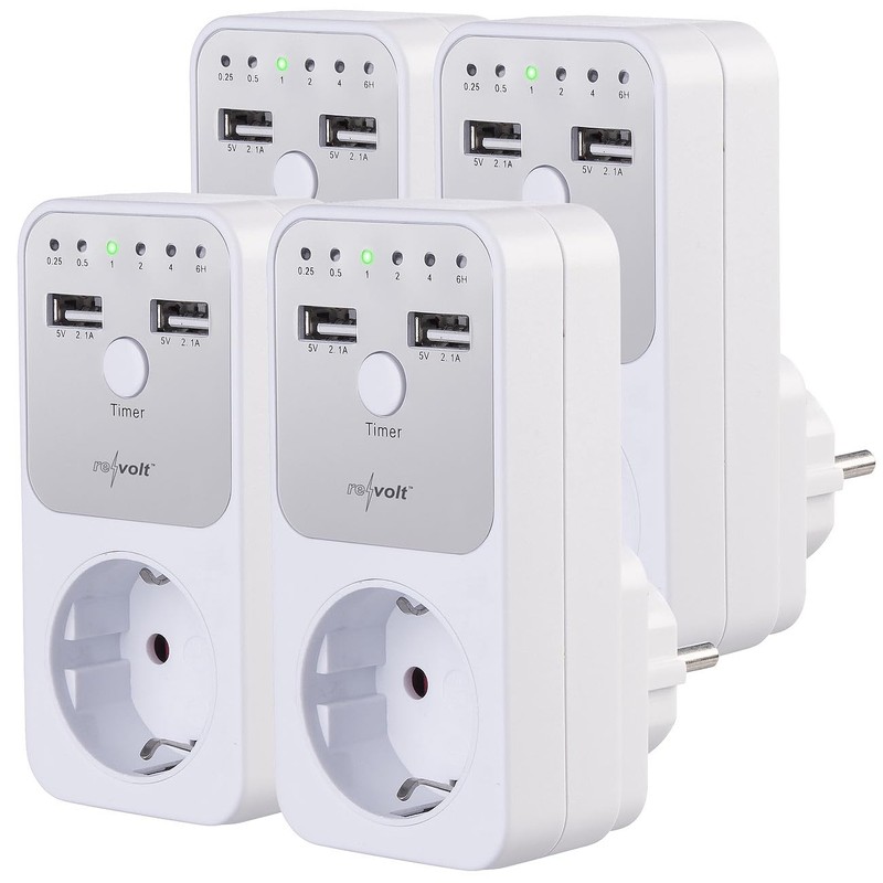 - 4 socket countdown timers including instructions in German. Socket timer function - let USB or 230 volt devices automatically turn off with a time delay