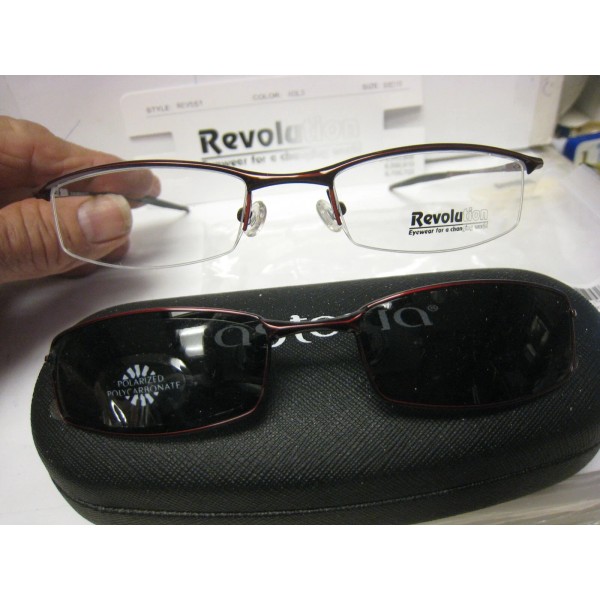 Revolution Eyewear NEW Revolution Eyeglass Frame W/ Magnet sun shade REV551 RDLS 50-19-132 w/case