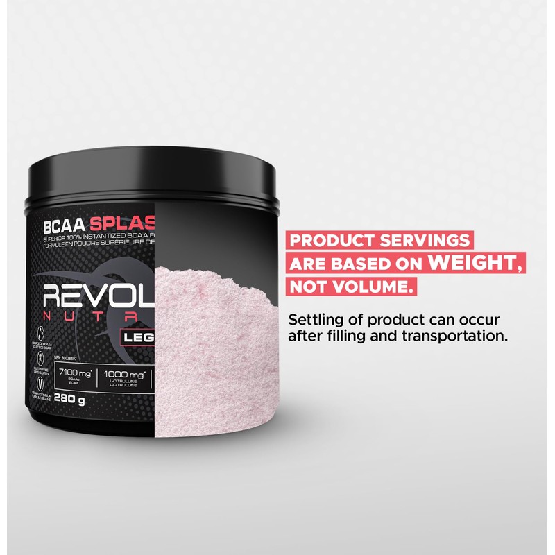 Revolution Nutrition, BCAA Splash, BCAA Powder, Vegan Formula, Zero Calorie, Lactose Free, Muscle Recovery, Post Workout, 7100 Mg of Branched Chained Amino Acid, 1000 mg Citrulline Malate, 280 G, 46 Servings (Sour Watermelon, 0.62 Pound)