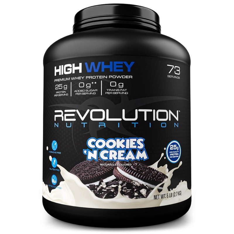 Revolution Nutrition Revolution Nutrition, High Whey, Protein Powder, Whey Isolate, Gluten Free, Lean Muscle Mass for Men & Women, 25g of Protein Per Scoop, 908 g, 24 Servings (Cookies & Cream, 6 Pound)