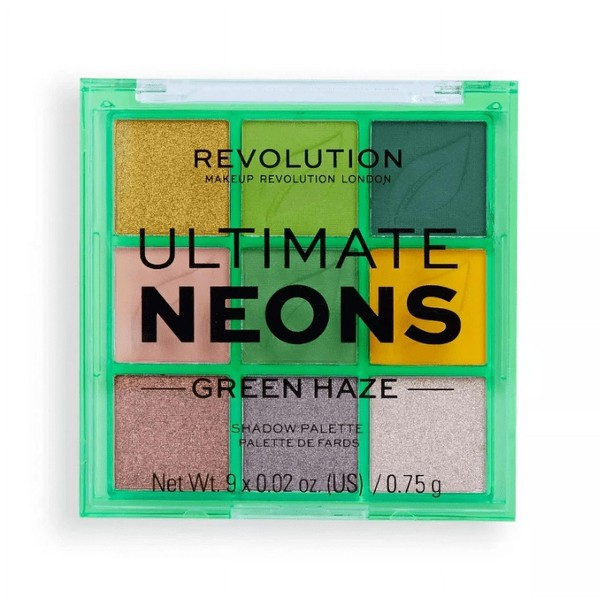 Revolution Ultimate Neons Green Haze Eyeshadow Palette, 9 Shades, 0.02 oz