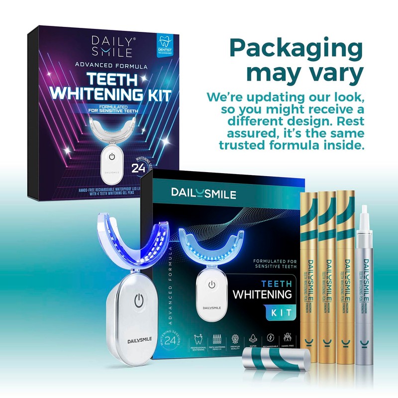 Dailysmile Teeth Whitening Kit with LED - Formulated for Sensitive Teeth, Hands-Free, Waterproof LED Light and 4 Gel Pens, Instant Results