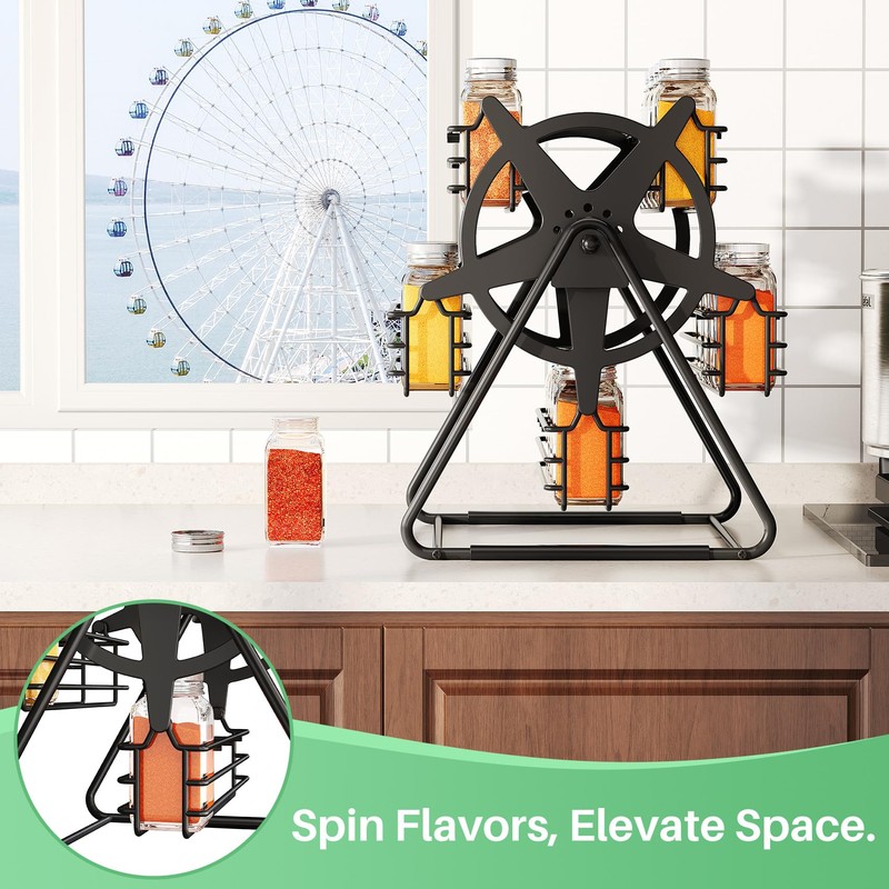 - Fun Ferris-Wheel Style for Your Kitchen: The revolving spice rack adds a playful, modern look to countertops, making your kitchen feel cozy and unique.