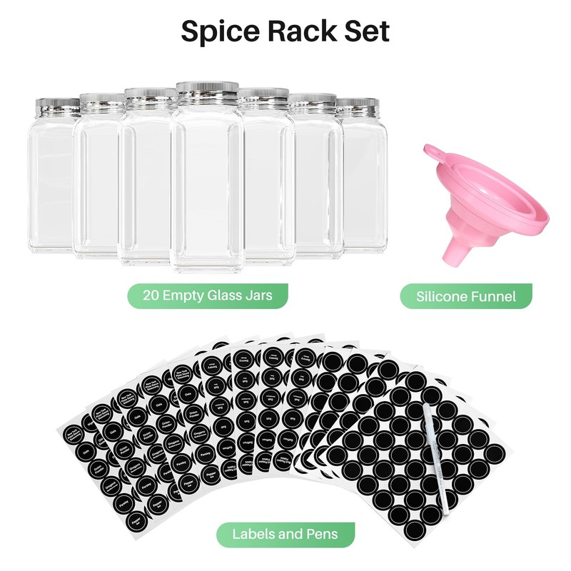 - Comes with Empty Bottles & Labels: The Ferris-wheel spice rack set includes 20 jars, a funnel, and multiple erasable labels. Organize your spices your way.