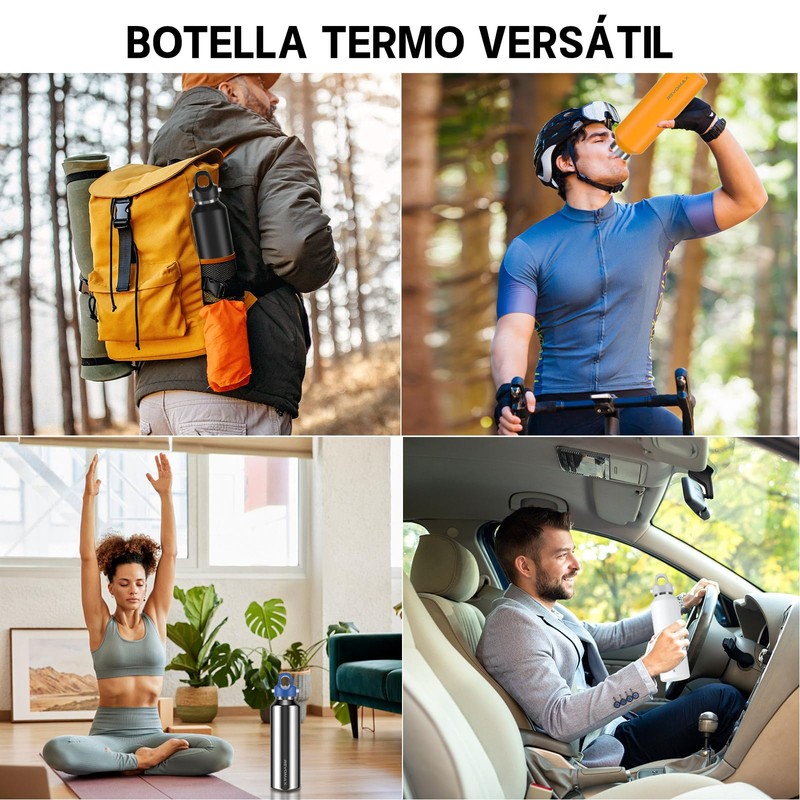 - MÁXIMA RETENCIÓN DE TEMPERATURA PARA BEBIDAS CALIENTES Y FRÍAS - Gracias a su tecnología de aislamiento al vacío de doble capa de acero inoxidable, este botella de agua termica mantiene tus bebidas calientes hasta por 18 horas y frías hasta por 36 horas. Perfecto para el trabajo, la escuela, o viajes largos, garantiza que tus bebidas siempre estén a la temperatura ideal para disfrutar.