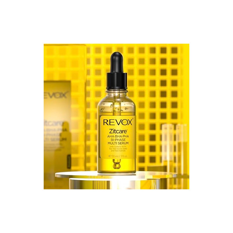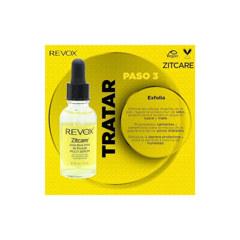 REVOX B77 ZITCARE AHA BHA PHA SUERO MULTIFASE BIFASICO CON CENTELLA 14.5%, ARBOL DE TE Y NIACINAMIDA 30MILILITROS