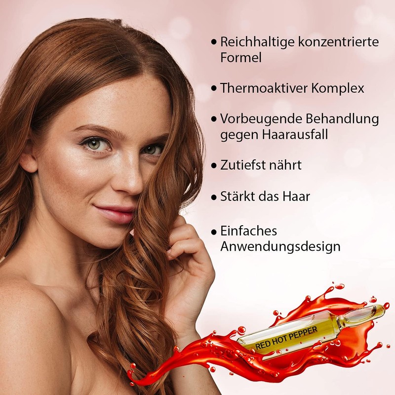 - Enriched with extract of red pepper that stimulates the hair follicles, nourishes it and prevents hair loss. A combination of amino acids, plant extracts and keratin makes this product excellent for strengthening hair and makes it smooth and shiny.