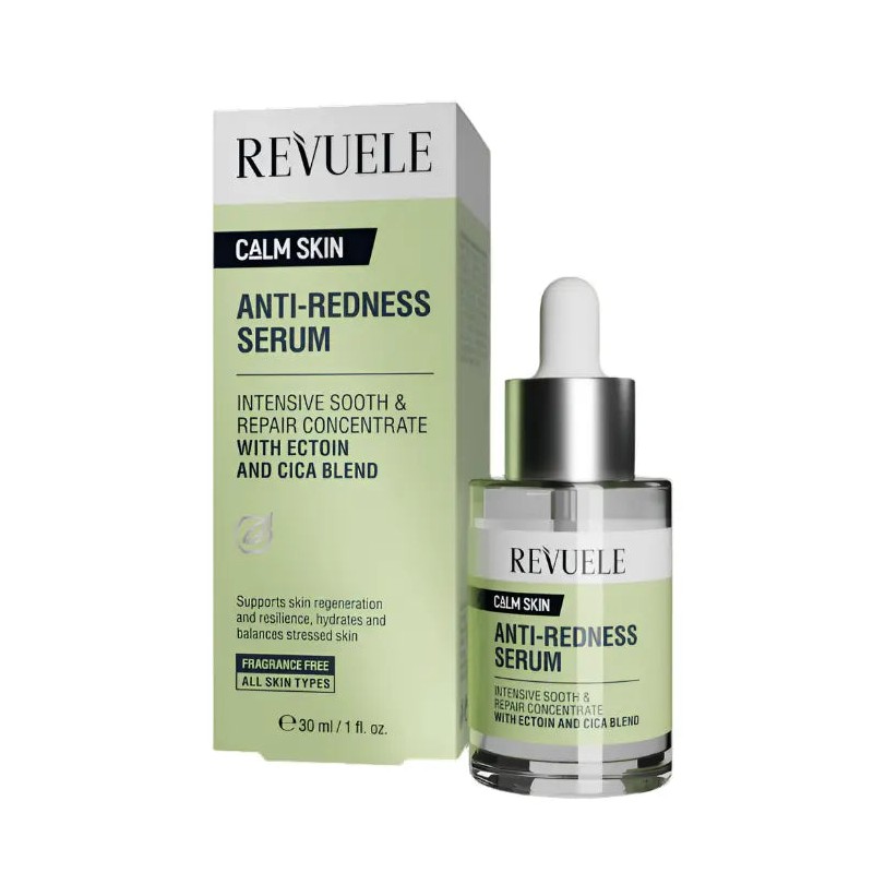 The Revuele Anti-Redness Serum is a lightweight, creamy serum that provides immediate relief for irritated skin. Do you suffer from redness, sensitivity, or just need a calming boost? Then this serum is exactly what you need. Thanks to the combination of ectoin and centella asiatica, your skin is deeply nourished and hydrated, while its natural balance is restored.
