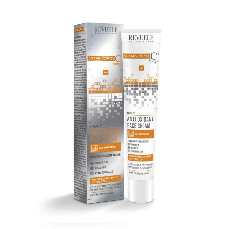 The Revuele Vitanorm C+ Energy Anti-oxidant Face Cream - Night is a highly concentrated antioxidant night cream. The night cream protects your skin against free radicals. It prevents signs of skin aging and provides extra vitamin enrichment of the skin.