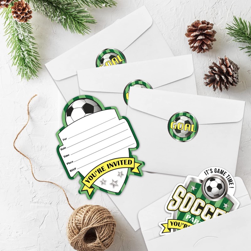 • Soccer Party Invitation Sets: There are 15 soccer brand shaped invitation cards, 15 premium white envelopes and 15 matching envelope seal stickers in this package. These beautiful invitations will make your party the talk of town and make the guests excited to come and participate.
