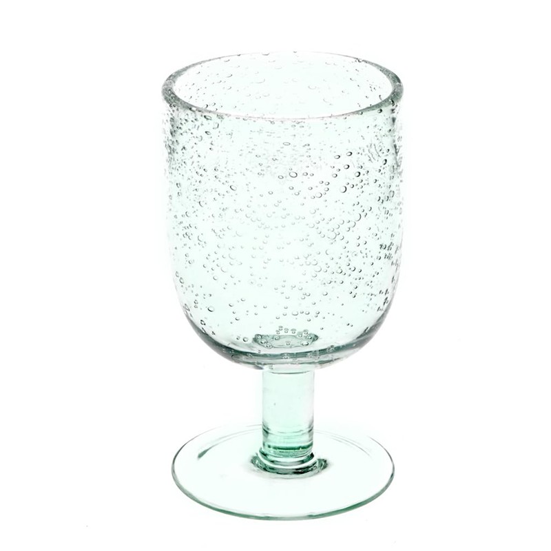- This unique glass features decorative air bubbles formed by hand-blowing.
