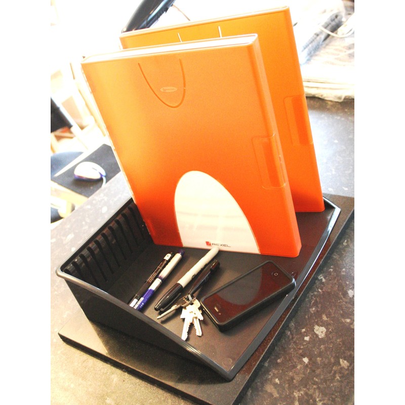 Rexel Modular Desk Tray with Document Boxes 1 Slim 1 High Capacity Tomato Ref 2101342