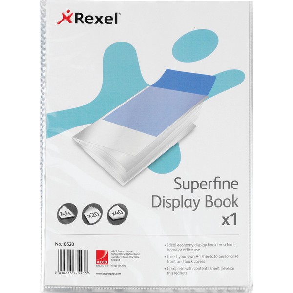 Rexel Superfine Display Book 20 Sheets A4 Clear