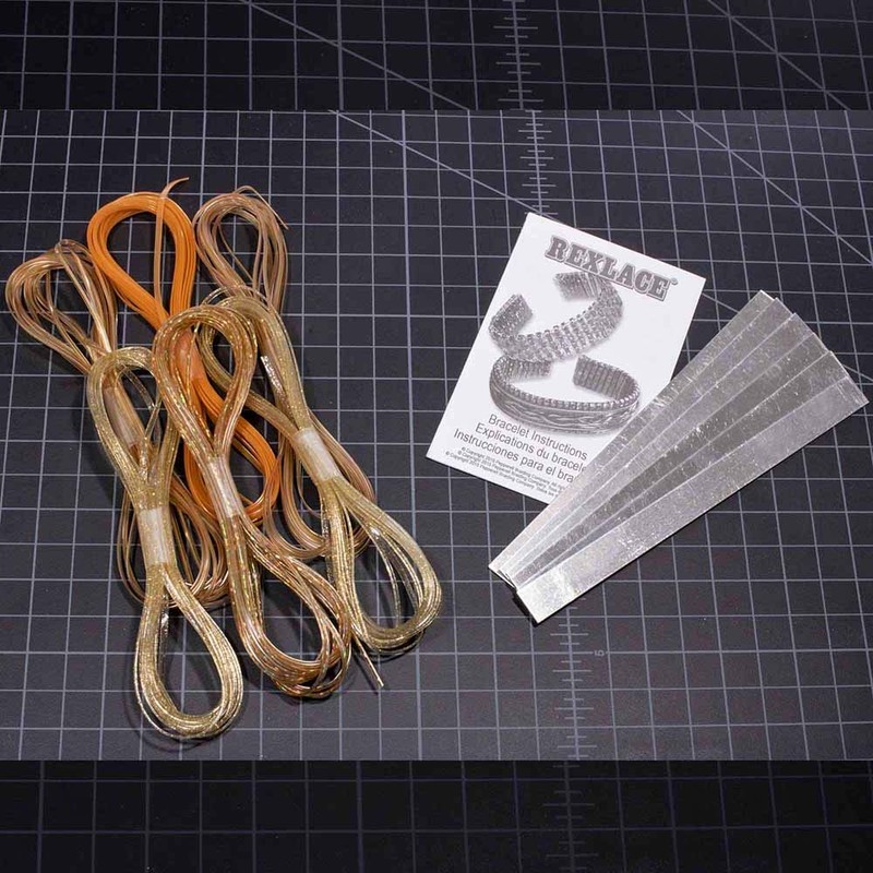 These mock metal bracelets are an almost match to high-end designer jewelry. They form a crescent bangle made from metal blanks wrapped in plastic lacing. Each kit contains an easy to follow illustrated instruction book that shows you how to do multiple wrapping and weaving techniques. There is enough material in the kit to make up to 6 bracelets. Other materials needed for this kit: ruler, scissors, clear-drying glue, and clear tape.
