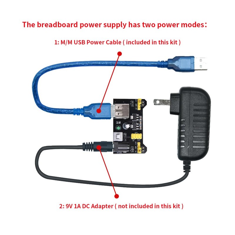 - The Breadboard Power Supply come with a USB Power Cables,which is hard to find.