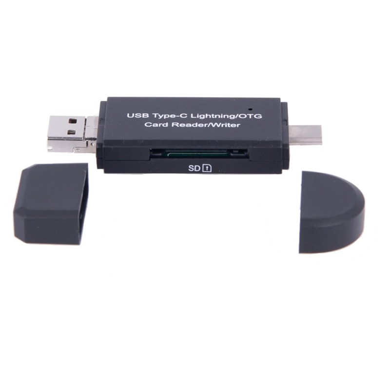 REY USB/8 Pin to USB C OTG Adapter SD/Micro SD Card Reader up to 64GB