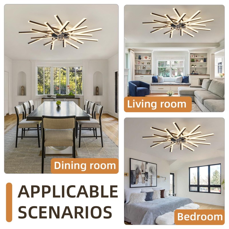 - Dimmable Ceiling Fan Light: The modern LED ceiling fan light uses the remote control to adjust the brightness by stepless from 10%-100% and step-less color temperature ranging from 3000K-6000K. You can also use the remote control or wall switch to quickly switch the light color (white light, natural light, warm light). It is suitable for living room, kitchen, dining room, bedroom, hotel, office, basement, stairs, entry, hall villas, and other interiors, etc