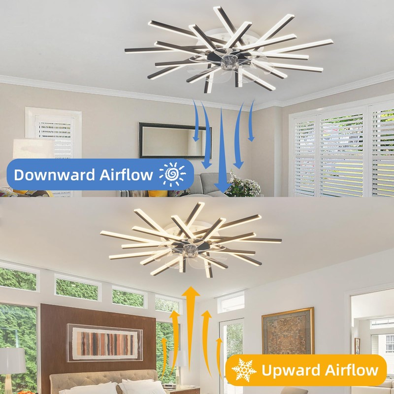 REYDELUZ 36.2in Modern Ceiling Fans with Lights,Flush Mount Ceiling Fan with Remote App Control,Dimmable 18 Heads Low Profile Ceiling Fan with 6 Speeds for Bedroom,Dining Room,Kitchen-Black