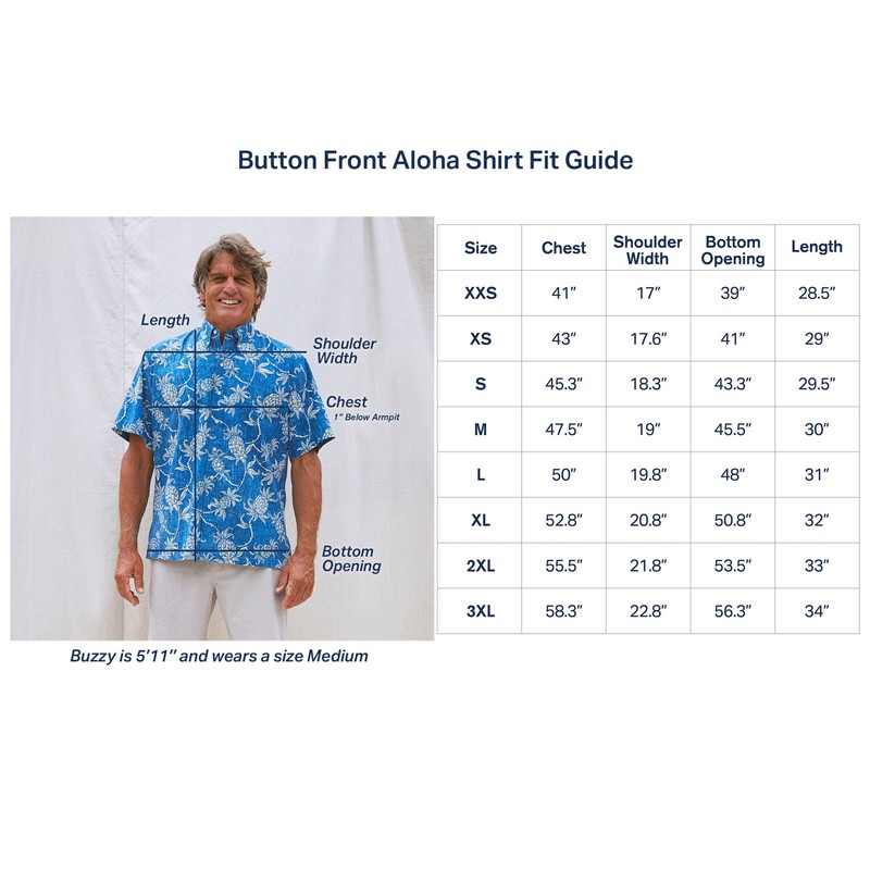 - Multiple Fit Choices: Banzai Biscus comes in multiple fits: Classic Fit Button Front is cut with a little extra room through the chest & body, with side vents and back box pleat for relaxed comfort and traditional Aloha shirt feel; Pullover, a classic fit with a popover 4-button half-placket; and Tailored Fit, trimmer than traditional aloha shirts with a rounded shirt tail for a contemporary and modern untucked look.