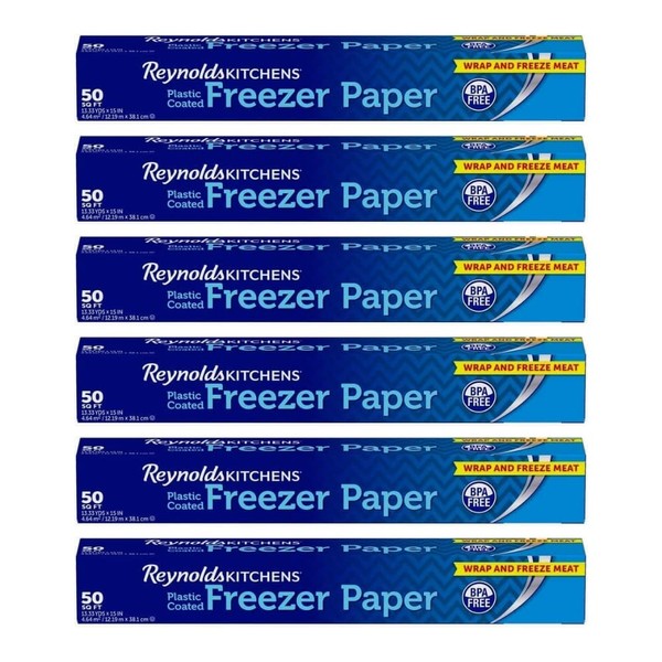 - This package contains one 50 square foot roll of Reynolds Kitchens Plastic Coated Freezer Paper.