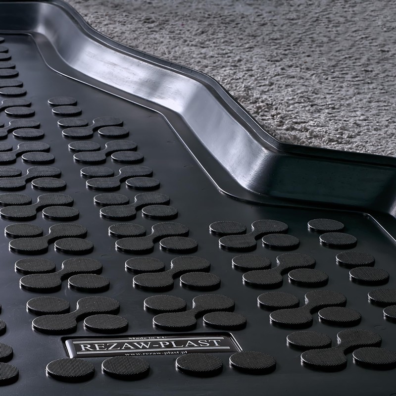 - REZAW-PLAST car mats offer vehicle-specific fit, high-quality rubber with raised edges for dirt and moisture containment, easy cleaning, and anti-slip surface for enhanced protection.